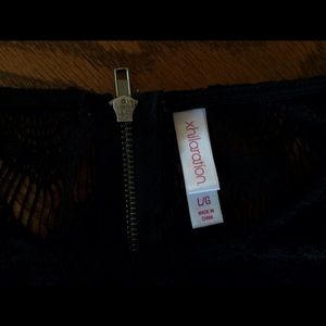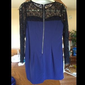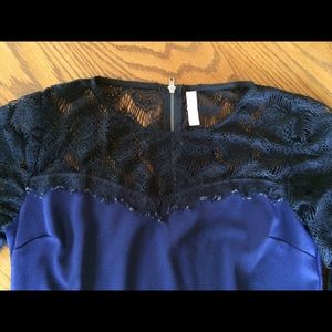 long sleeves, dark blue dress with black lace long sleeves and lace above chest area; only worn once; purchased at target