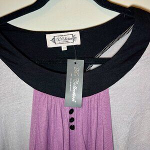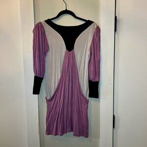 This dress is so unique, the body of the dress has panels which creates interesting movement through the piece. The purple part is not connected to the gray part.