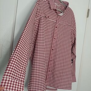 Long Sleeve Fishing Shirt Red Plaid UV Protection Wicking XXL