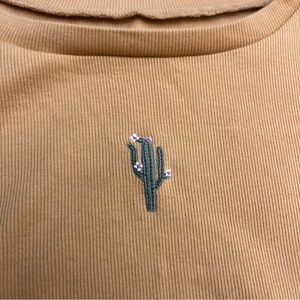 Long Sleeve Fitted Aeropostale Orange Cactus Embroidered XS Short Top Basic