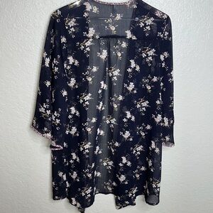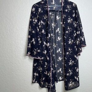 This is a really cute cover up with floral design. It’s in good condition. Great friend good size and good quality.