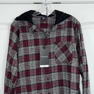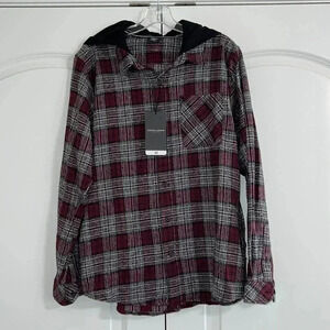 Long Sleeve Hooded Flannel Button-Down Shirt