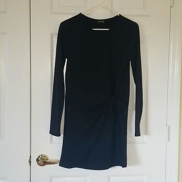 Super cute long sleeve black mini dress with a tie waist. Never worn, but no tags