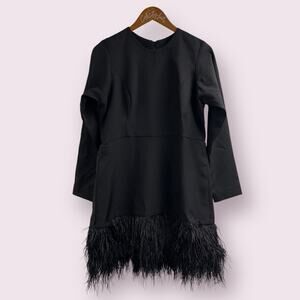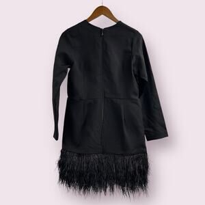 Long Sleeve Little Black Dress With Feathers Sheath Hi Quality Zip Back