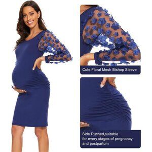Pregnancy Dresses for Women: Combination of floral mesh bishop long sleeve and ruched side bodycon dress, with removable belt, light and comfortable, Simple and elegant classic, always make you cute and feminine。