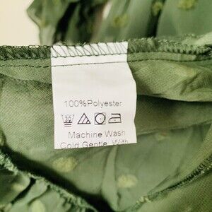 Long Sleeve Mini Dress Small Army Green Polka Dot Olive Sheer Tie VNeck
