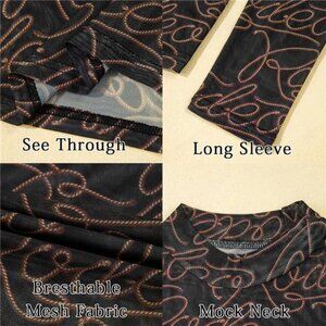 *Mesh sheer long sleeve laying top is made of elastane fabric,the fabric is comfortable, breathable and stretchy.Sheer lace long sleeve blouse tops,letter embroidery woven into the mesh,slim fit, pull on closure, mock neck,trendy chic y2k tops, women's sexy see-through tops make you more feminine.