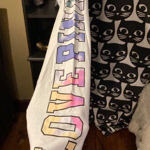 Beige like color, comes from a smoke free home. No holes and super comfy. Fits loose.