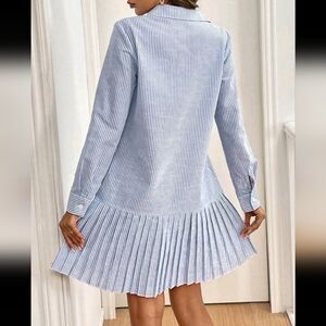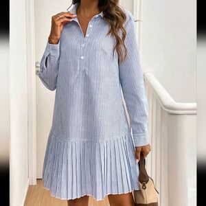 Long Sleeve Pleated Hem Button Detail Dress For Ladies
