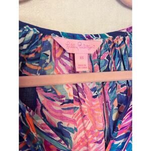 The product is a stylish long sleeve rayon blouse by Lilly Pulitzer, designed for women in a size XS. Made with colorful and vibrant patterns, this top is perfect for adding a pop of color to your wardrobe. The long sleeves make it versatile for wearing during various seasons, while the brand's reputation for quality ensures a durable and fashionable piece that will stand out in any outfit. Ideal for those looking for a chic and trendy blouse that is both comfortable and on-trend.