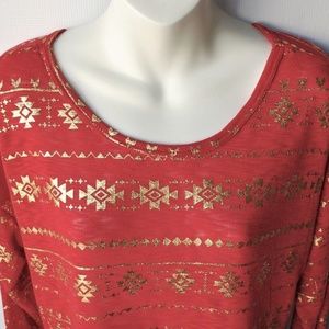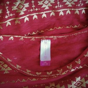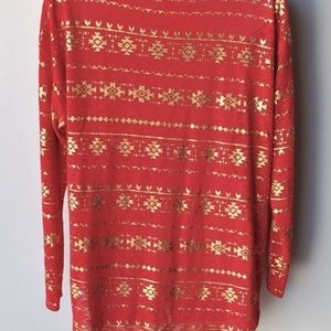 Women's No Boundaries Long Sleeve Red & Gold Christmas Top Size L