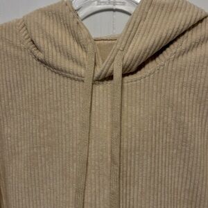 Long Sleeve Ribbed Corduroy Hoodie Tan Size Large