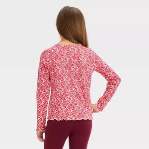 Long Sleeve Ribbed T-Shirt Top Cat & Jack Pink Red Floral Print Girls L 10 / 12
