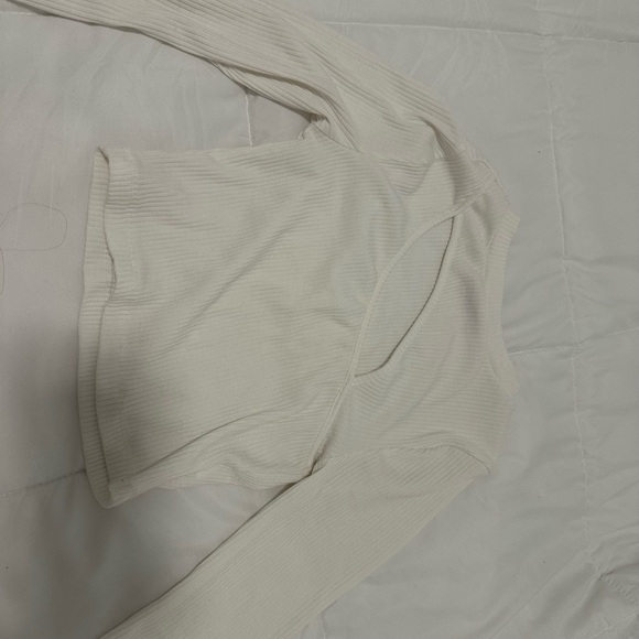 NWOT. Size S, fit like XS. Beautiful stylish cream/white ribbed top with long sleeves. Features a unique cut-out design. Never worn
