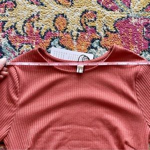 This adorable mini dress hugs all the right places and is ruched down the entire body to help hide any problem areas. The ruffled bottom gives it a playful look and the thinner fabric means the long sleeves won’t make you too hot.