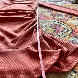 Long Sleeve Ruffle Knit Ruched Dress