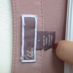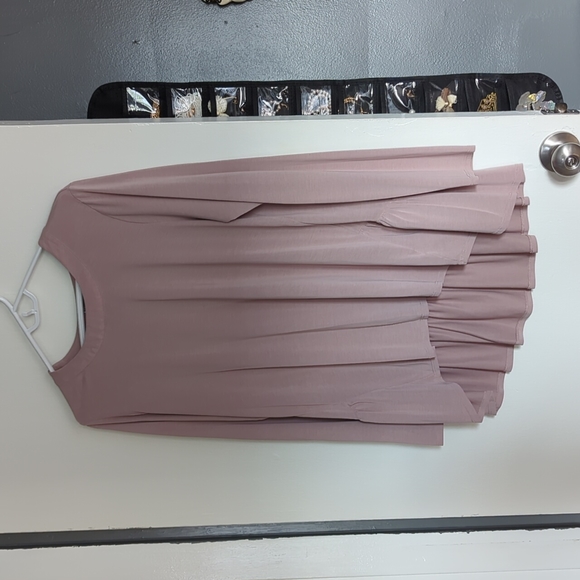 Silkysoft long sleeve blousey tee with a cute ruffle on the back (covers your butt!). Bought at Nordstrom. Ballet pink.