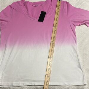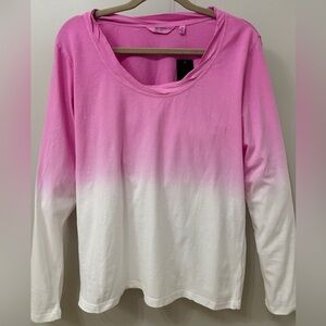 Long Sleeve Scoop Neck Loose Fit Tee Pink/White Ombré Medium