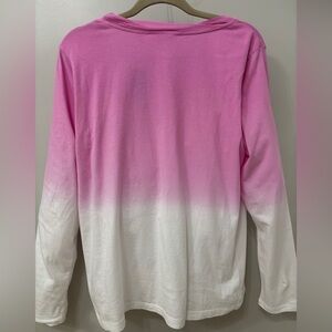 Stylish pink and white ombre long sleeve top. Perfect for casual wear. Perfection with Jeans!
