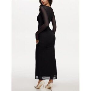 Long Sleeve Sheer Mesh Square Neck Long Dress Black