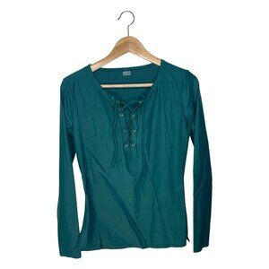 Long Sleeve Swim Shirt Rash Guard Green Size M