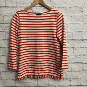 Preloved Red/White horizontal striped shirt w/ hemline fringe.