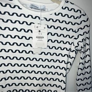 Berksha lettuce hem long sleeve t-shirt in white graphic stripe print. New with tags size S