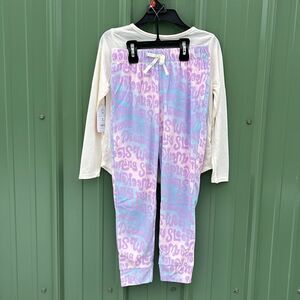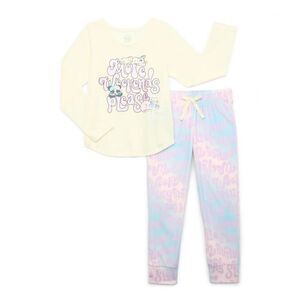 She will be asking for more weekends spent lounging in her new favorite pajamas with this cozy 2-piece pajama set. This 2-piece pajama set includes a long sleeve sleep top and sleep jogger pants. A fun graphic print on the tee and coordinating allover print joggers create a cute, stylish look for sleep time.