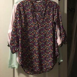 H&M (blue stripped, size 4), Lush (flowered, size xs), Zara Basic (pink stripped with white anchors, size xs), Candie's (light blue-beaded at the top, size small), Maurice's (green, size xs), Express (pink sweater with beads on shoulder, size xs). $25 for all. $6 each.