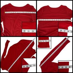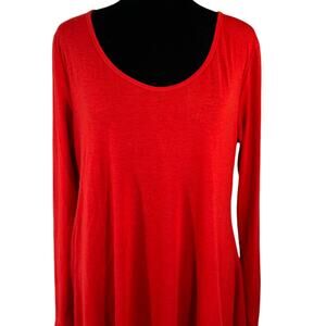 Long Sleeve Tunic Top Scoop Neck Asymmetrical Hem Red Measurements Included