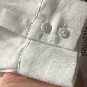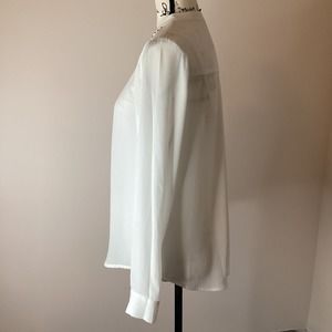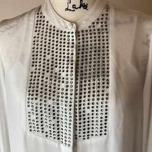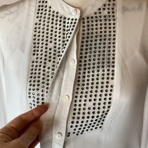 Long Sleeve White Blouse Tunic Top Silver Rhinestones Hidden Buttons Size XSmall