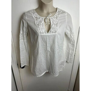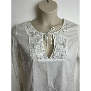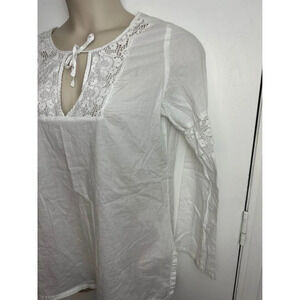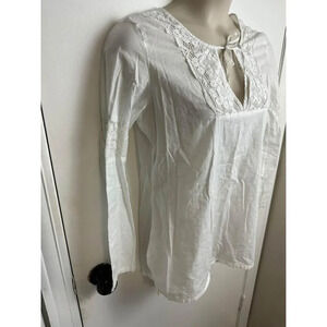 Long Sleeve White Top Size Large 100% Cotton #0477