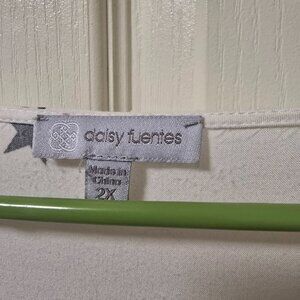 This is a Daisy Fuentes 2X white top with Blue Stars. It has a decorative lace-up tie front.