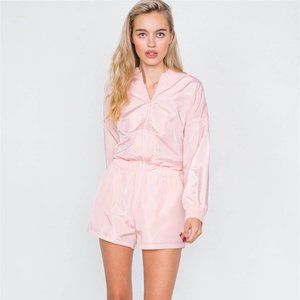 -elastic cinched waist, mixed cuff and neck fabric, windbreaker, front zipper closure, partially lined, solid, two front side pockets-