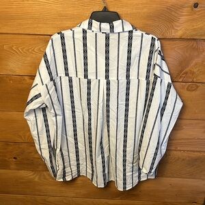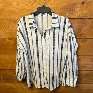 Long Sleeve Womens V-Neck Stripes Button Down Shirt LG Business Casual Blouse