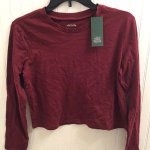 Long Sleeved Burgundy Cropped Tee by Wild Fable