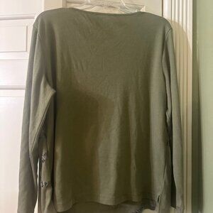 This is a lightly pre-loved long sleeved green T-shirt that is comfortable and in excellent condition.