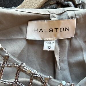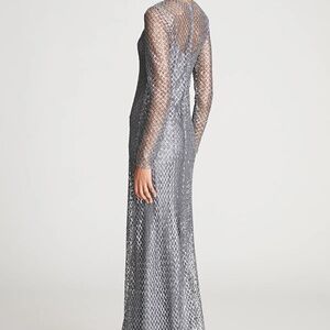 Halston "Kirsten" Long Sleeved Sequin Mesh Evening Gown.
