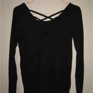 This long sleeved black tee features a gold Batman logo on the front & a flirty fun crisscross back (see photo). I wore this only one time & that was for a trip to Six Flags. Size XS. Excellent used condition & from a smoke & pet free home.