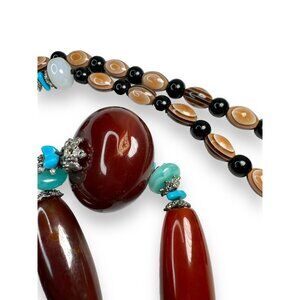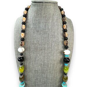 • Style/Features: Long 30" continuous strand, oversized focal stones, organic boho style, earthy color palette