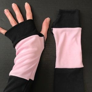 Long Striped Gloves Pink Hand Warmers Black Armwarmers Patchwork Sleeves Covers