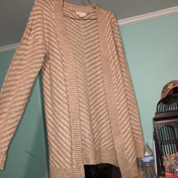 Adorable long sweater! Compliments the figure nicely! Great for the weather coming up! The tag says XS but I’m a Medium and it fits just right.