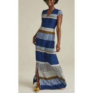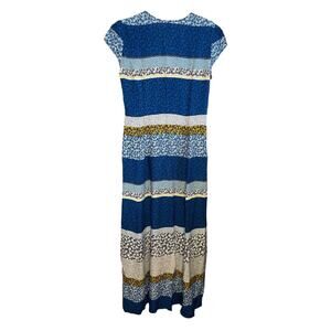 New with tags Long Tall Sally LTS Ditsy Print Maxi Dress in blue, yellow, and multicolor. Short cap sleeves, button down full length with slit at center bottom. Lightweight viscose material in colorblock floral pattern. Long length made for taller frames. In new condition.