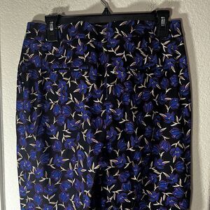 Long Tall Sally Pants Womens Sz 12 Black Blue Floral Work Career