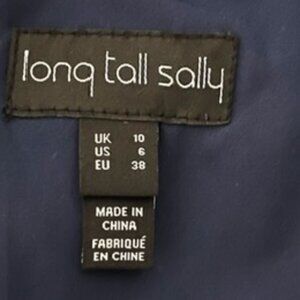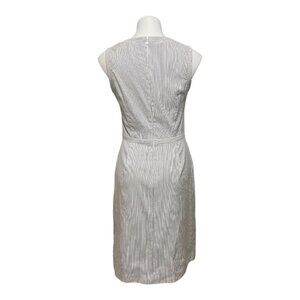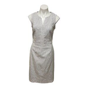 Long Tall Sally Size 6 White Navy Pinstripe Sleeveless Split Neck Sheath Dress