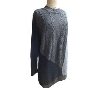 Long Tall Sally Sweater Dress Womens L Colorblock Asymmetrical Cable knit Preppy