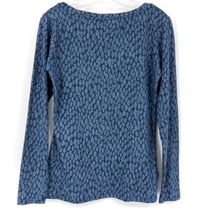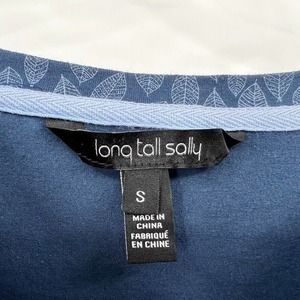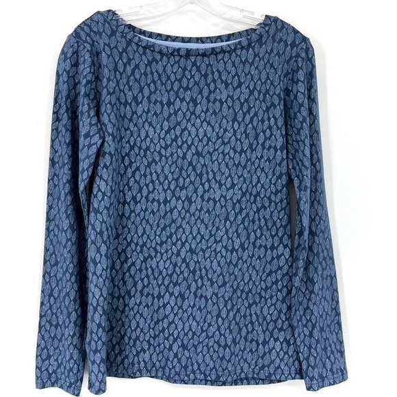 Long Tall Sally Womens S Blue Leaf Print Long Sleeve Blouse Cotton Knit Boatneck