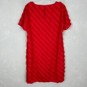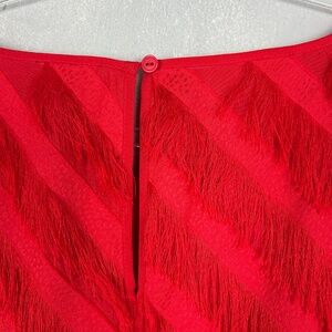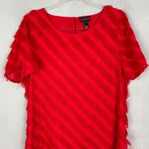 Long Tall Sally size 12 fringe dress red short sleeve chiffon lined side zip
