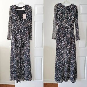 The Tall CURATD Dusky Tulip Playsuit Maxi features a printed dusky tulip print with a plunging V neckline. The body is fully lined with semi-sheer Georgette sleeves. While the fabric is sheer, the full body lining adds an extra layer of warmth for the cooler temperatures of Fall. The romper features a flowing maxi skirt that adds just the right amount of drama to your outfit.