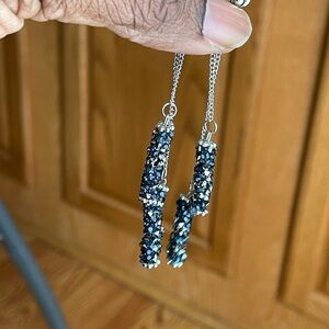 Long Tassel Earrings With Blue Crystals NWOT